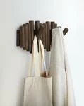Five Flip-Down Hooks: Picket is a wall mountable hook rail coat rack with five flip hooks; each holding up to 5 lbs