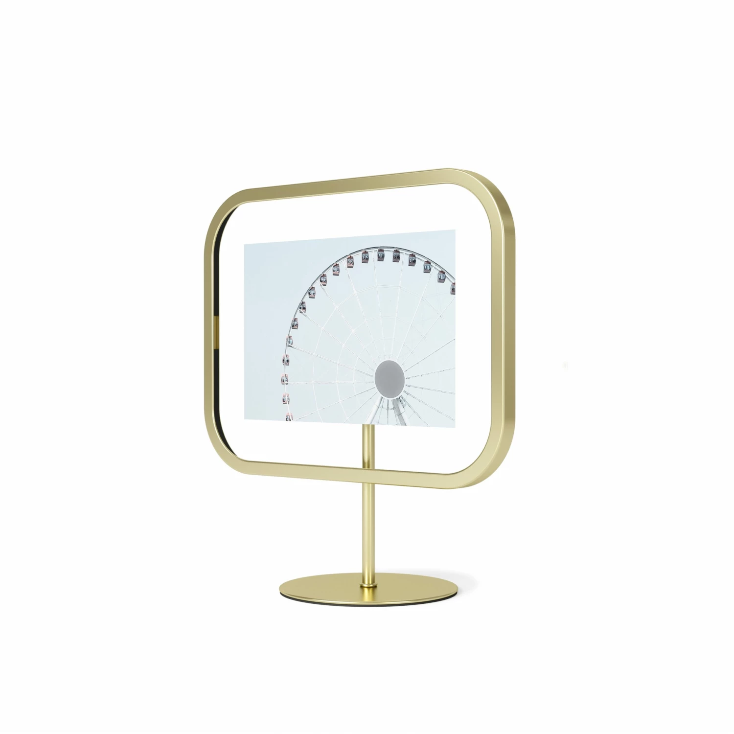 Introducing Infinity! A contemporary photo display by Umbra that can be freestanding or wall-mounted to create an eye-catching and sophisticated look to your space. Let your photo/art/illustrations float between two panels of glass to be enjoyed and admired. Can be used portrait or landscape. Designed to hold a 4×6 picture.