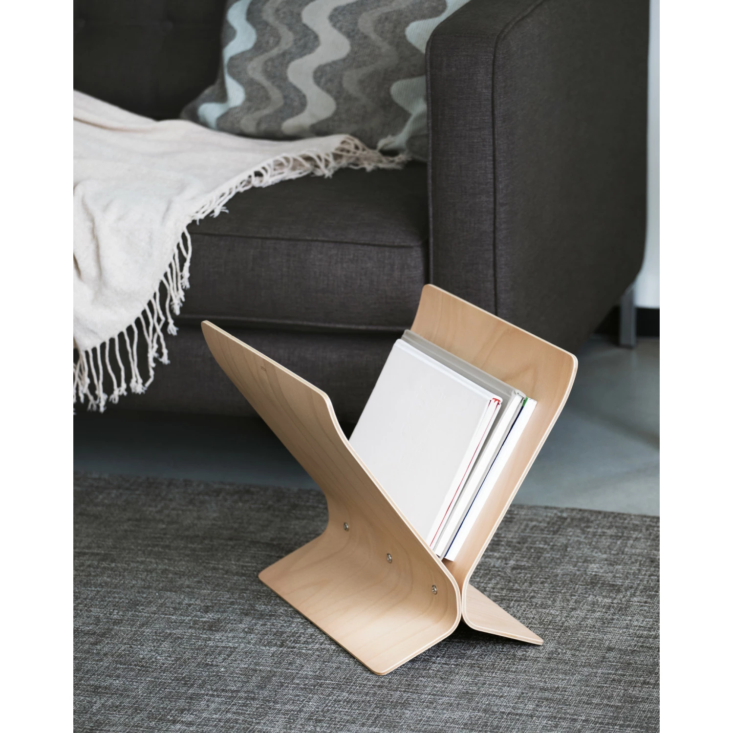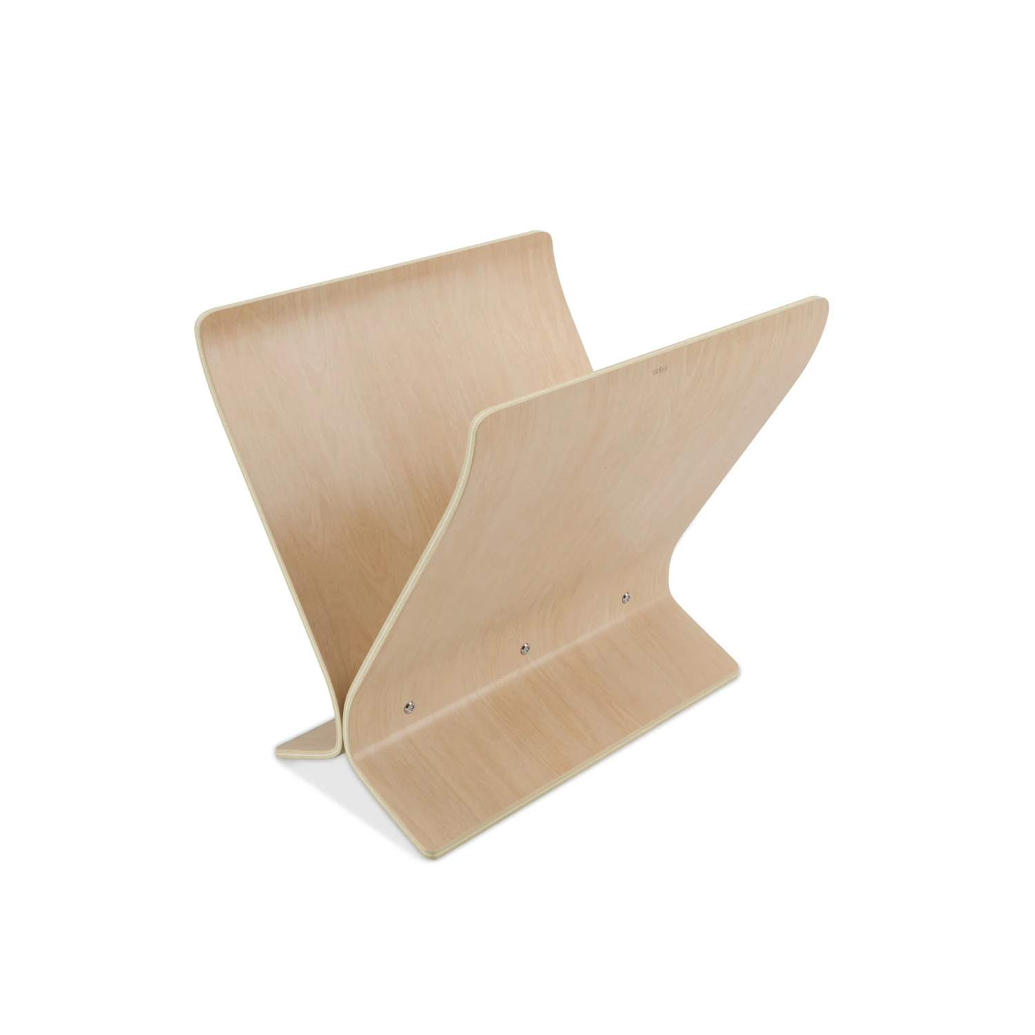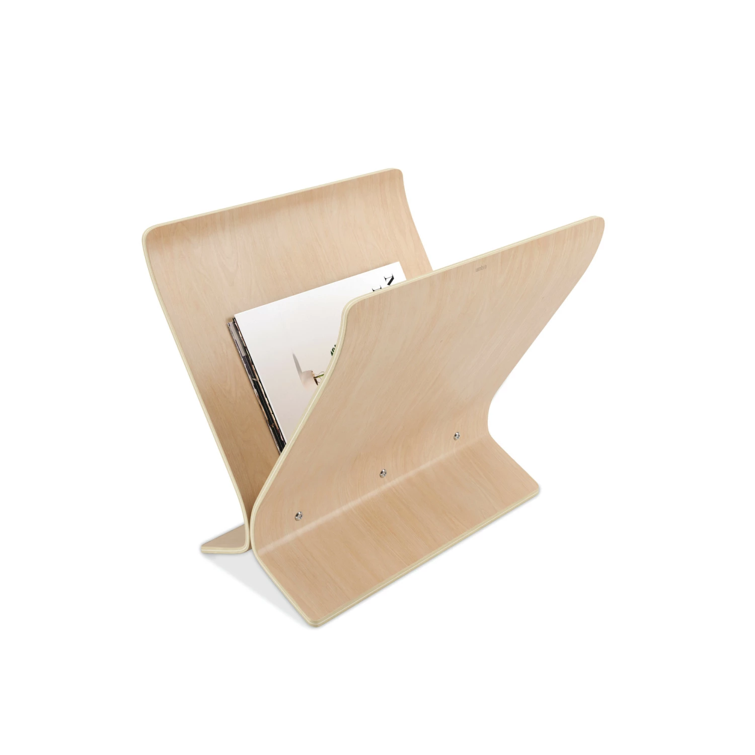 Magazine rack with a modern, streamlined silhouette designed by Paul Rowan for Umbra.